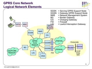 GPRS General Packet Radio Service is a non-voice service added to existing TDMA networks one of the 25G technology upgrades. It provides you with internet services on mobile. The SGSN Serving GPRS Support Node a router that manages the coordinates of the terminals in the area and provides the packet transit interface with the GGSN gateway.